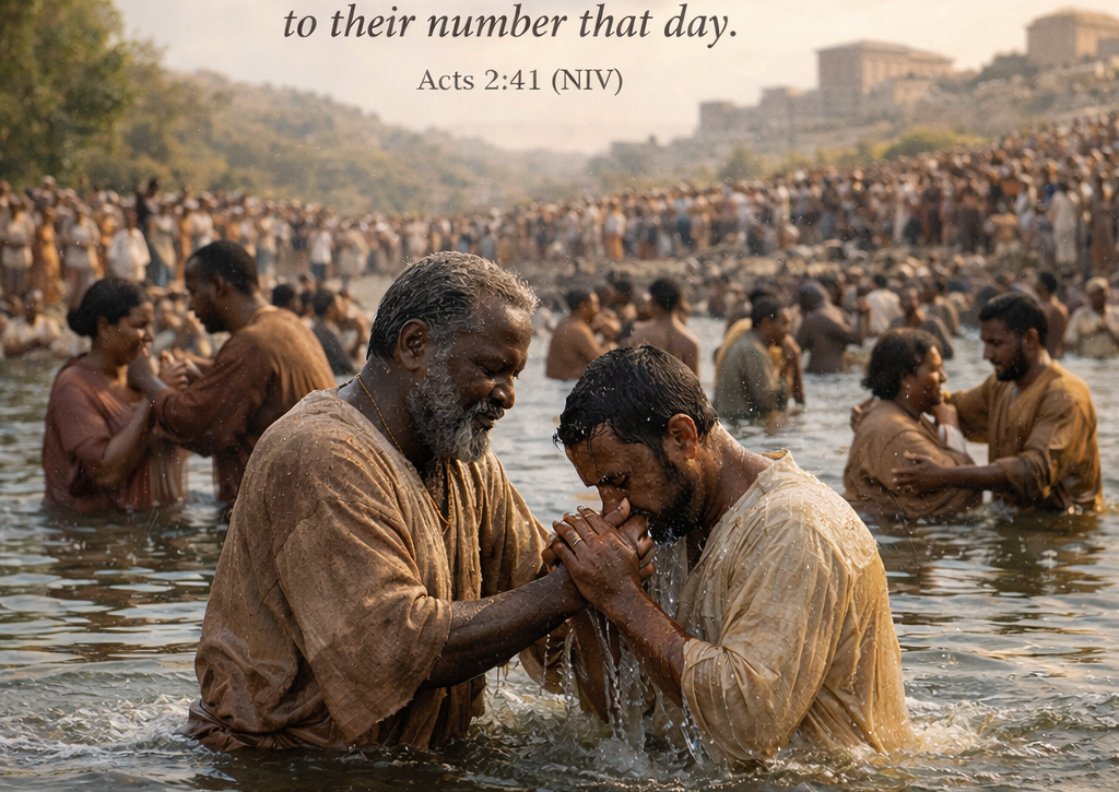 “Those who accepted his message were baptized, and about three thousand were added to their number that day.” (Acts 2:41 NIV)